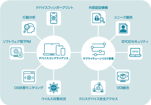 また、VDI などの中継ツールと統合し、強化されたデバイス・ID認証レイヤーを提供し、組織横断のシナリオにおいても安全性と利便性の両立を支援します。